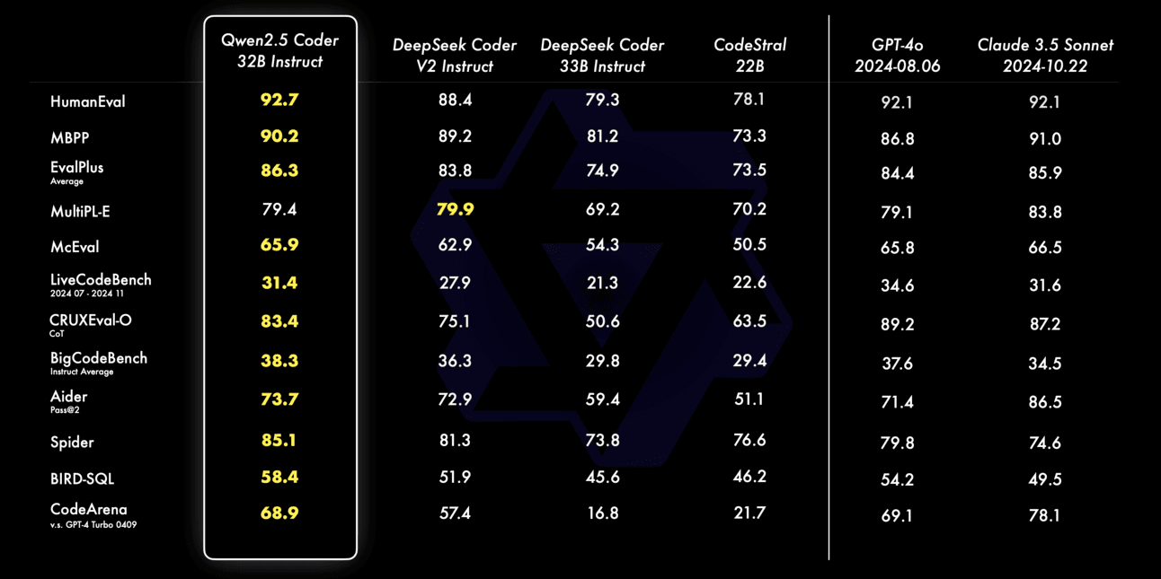 Qwen de Alibaba Cloud acaba de lanzar un conjunto de nuevos modelos de codificación de IA, y su versión insignia, 32B, iguala el desempeño de GPT-4o y Claude 3.5 Sonnet en puntos de referencia clave y al mismo tiempo sigue siendo completamente de código abierto.