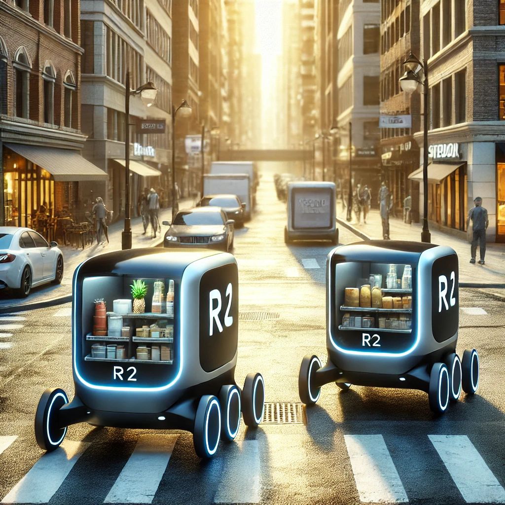 Estos vehículos, llamados R1 y R2, no tienen asientos para pasajeros y están diseñados para transportar comestibles, comida y otros productos de manera eficiente y segura.