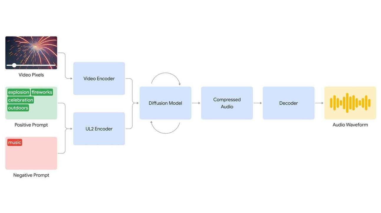 V2A combina píxeles de video sin procesar con descripciones de texto para producir audio realista que coincida con las imágenes y el tono de una salida de video.