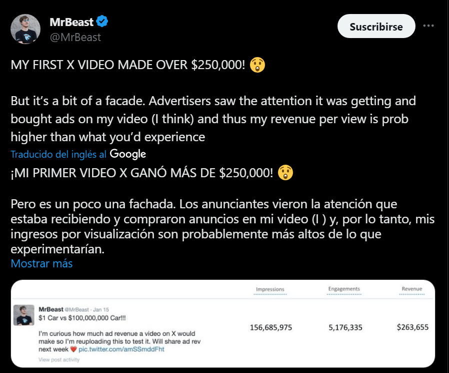 MR.BEAST GANA 250.000$ CON UN VÍDEO EN X