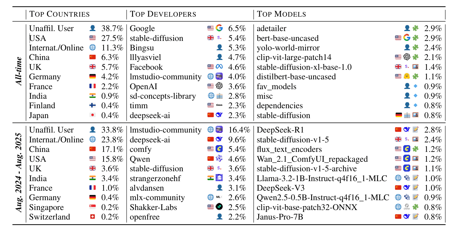 Un nuevo estudio del MIT y Hugging Face que analiza 2.200 millones de descargas de Hugging Face revela un “reequilibrio fundamental” de la economía abierta de IA, con el dominio de la industria estadounidense colapsando en favor de los pesos pesados chinos.